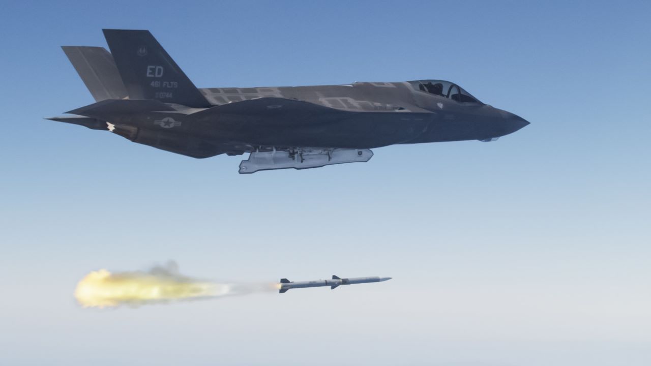AIM-120 AMRAAM (Advanced Medium Range Air to Air Missile) is a supersonic, all weather, day and night mission capable, active radar guided, fire and forget missile designed to destroy enemy aircraft in BVR (Beyond Visual Range) combat.